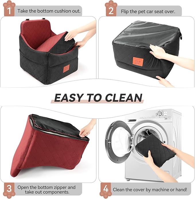 - Removable and Washable: This dog car booster seat is fully detachable and washable. Simply unzip the bottom to remove the foam, then place the pet car bed cover into the washing machine for cleaning. Friendly Reminder: The car pet bed comes vacuum-packed. After opening the package, please allow 24-48 hours for it to fully return to its optimal shape