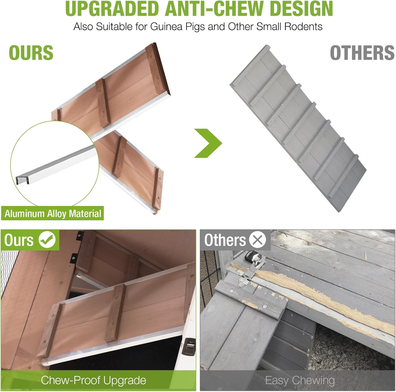 - Reinforced Chew-Resistant Design: The access ramp features aluminum alloy-reinforced edges to discourage chewing by rabbits and other small pets, enhancing the hutchβs long-term durability. This sturdy design protects against wear and tear, ensuring lasting use.