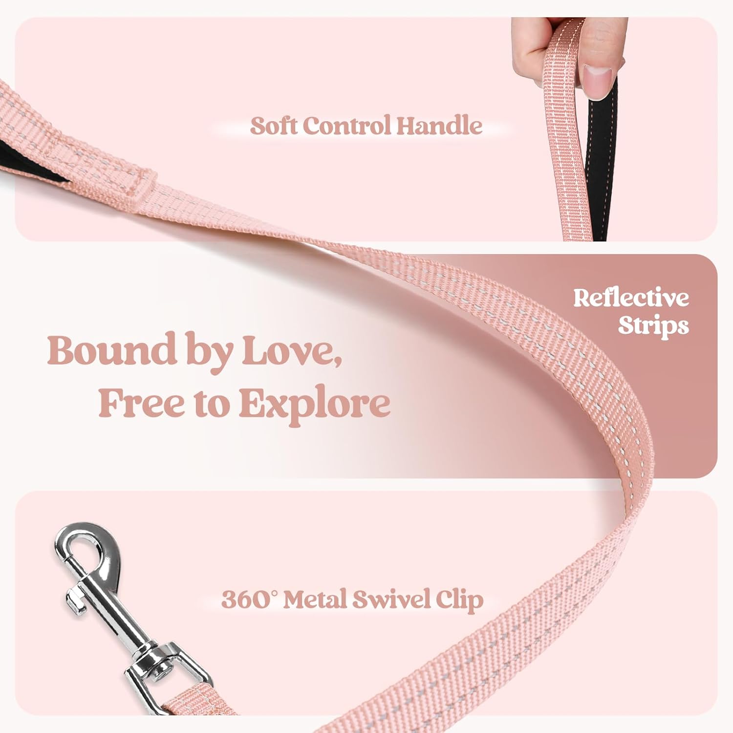 - Dog Harness with Leash Set: The color-matching harness and leash with reflective bands make it fashion and visible for pet outing. The leash is 5.12ft in length, with an anti-tangling clip and a palm-friendly handle