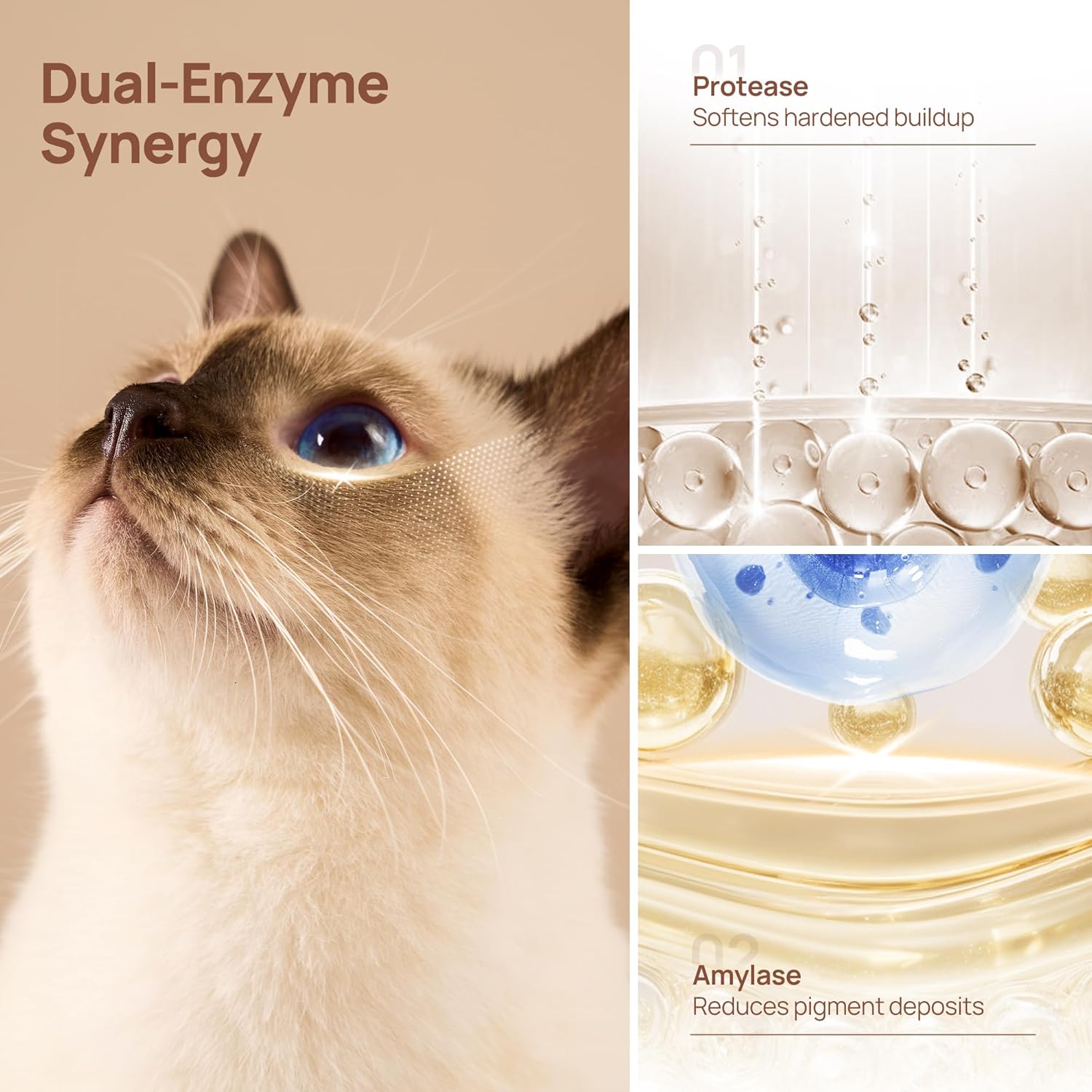 • PRO-Grade Dual-Enzyme Formula Targets the Source of Stains - We understand tear stains can be persistent. Unlike other surface-level wipes, our professional formula features a dual-enzyme system (Protease & Amylase) that works to dissolve the buildup that causes discoloration, aiding in the gradual reduction of stains with consistent use.(Enzyme may have a natural scent, but is non-irritating). It's a proactive step for maintaining cleaner, healthier-looking eyes as part of your dog's daily care