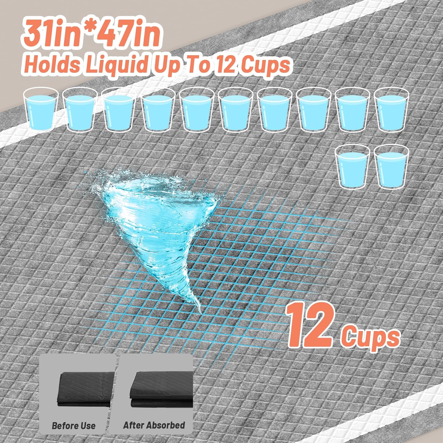 40PCS Charcoal Pee Pads for Dogs 31"x47", Extra Large Odor-Control Carbon Puppy Pads, Ultra-Absorbent & Quick Dry, Thicken Potty Training Pads for Doggie Cats Rabbits, Black Pet Piddle Pad