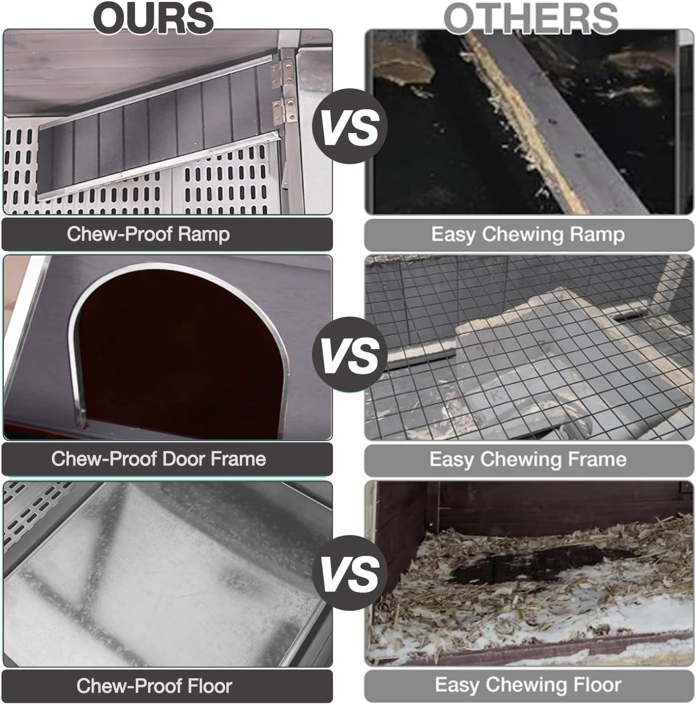 • ANTI CHEWING METAL EDGES Made of solid wood and the ramps, hiding holes and floor frames were reinforced with metal frames to prevent rabbits from gnawing and make the rabbit cages more durable. While being safe and breathable.Give your furry friend a cozy home