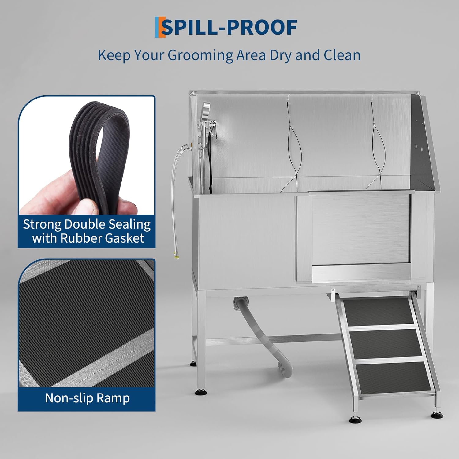 - Efficient Drainage System Removable floor grate prevents water accumulation and simplifies post-bath cleanup. Maintains tidy workspace during grooming sessions.