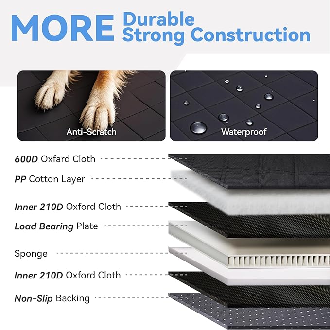 - Ultimate Comfort with 7-Layer Construction:The hard bottom features an 7-layer structure for maximum comfort. It is padded with high-resilience eco-friendly PP cotton and wrapped in premium Oxford fabric, offering a soft yet supportive surface. The bottom panel is also removable for easy cleaning.